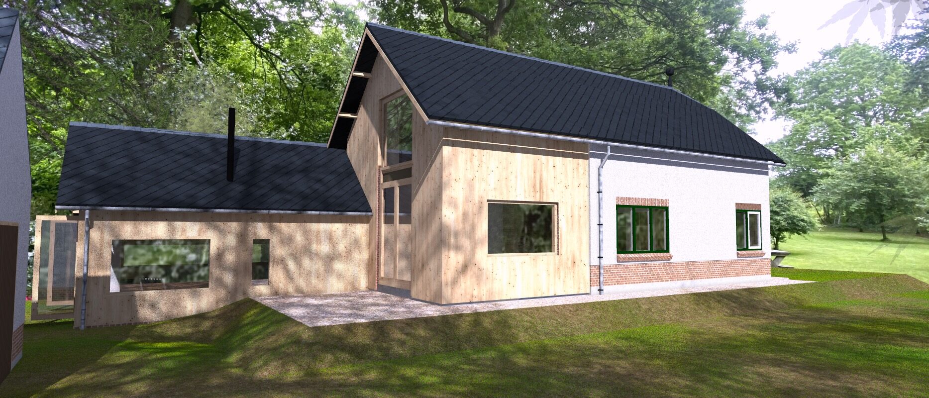 impressie Bestaande vorm doortrekken. Door te kiezen voor andere materialen blijft het originele huisje herkenbaar.